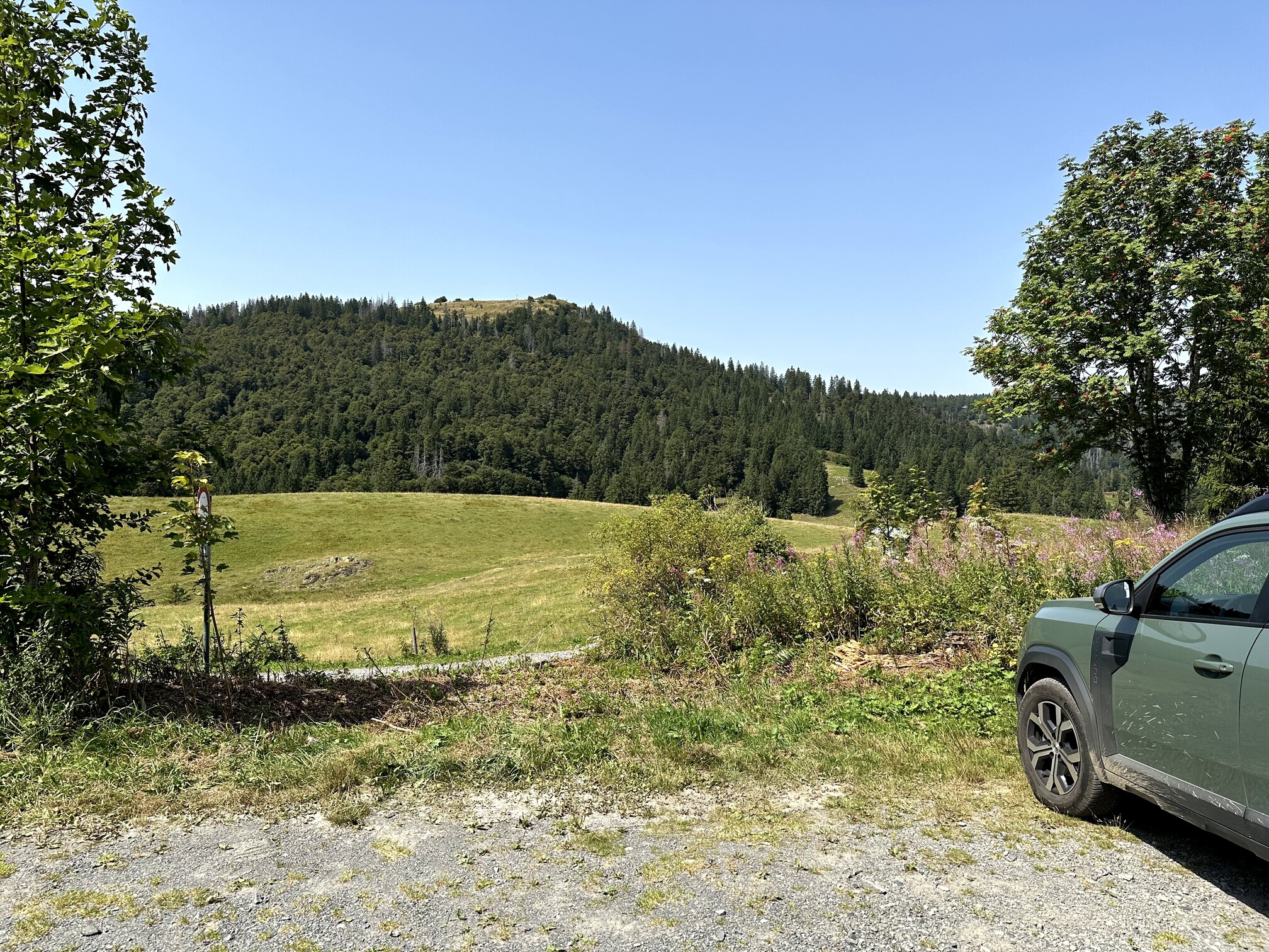 Another swift activation—this time, featuring a scenic drive from Schönau through tranquil, idyllic valleys. I parked at Kreuzweg, the pass leading into the Rhine valley, where there was ample parking space.