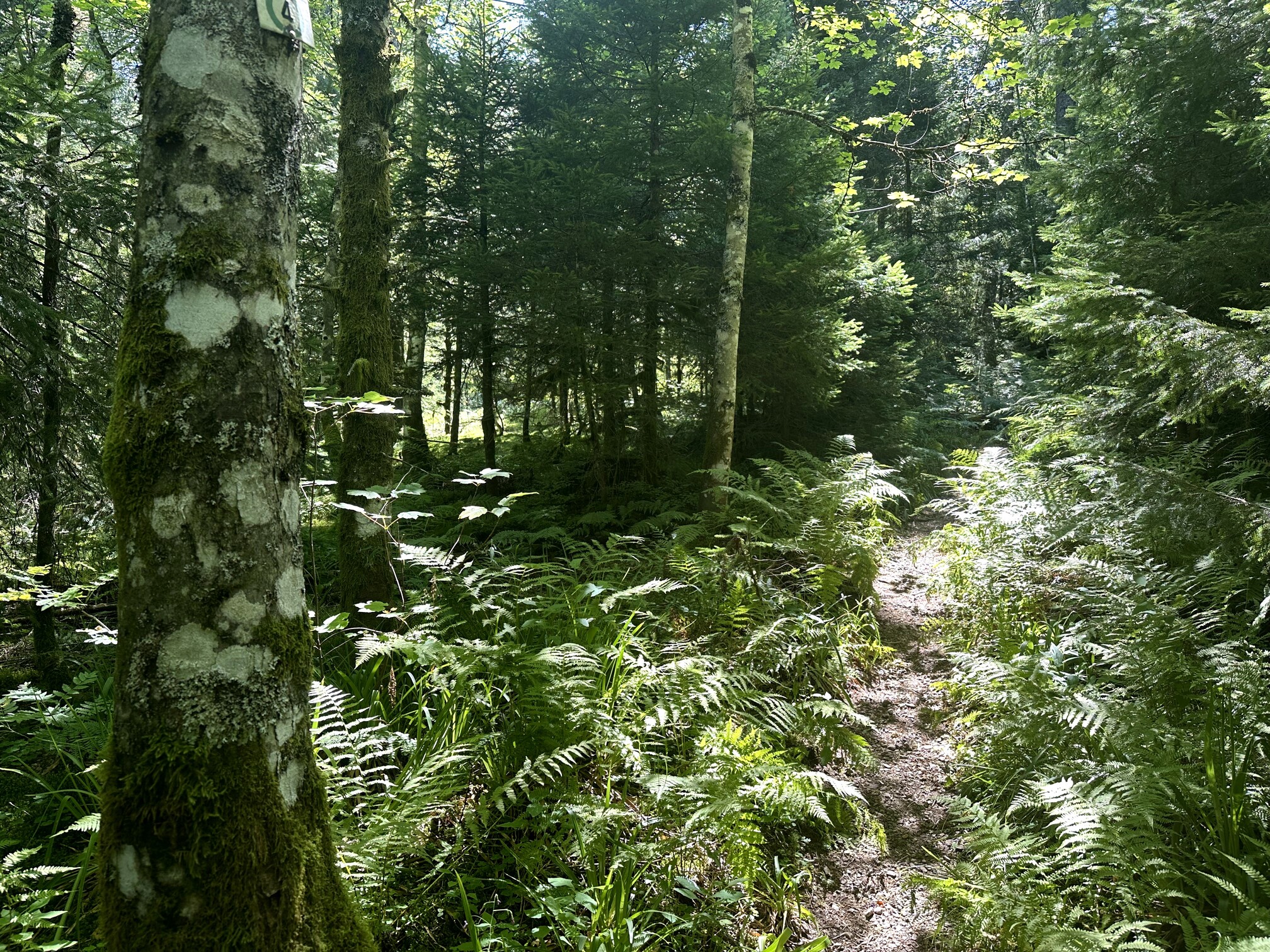 Approaching from Herrenschwand, I parked at Tiergrüble (1068 m). The road from Herrenschwand to Tiergrüble grew alarmingly narrow, barely wide enough for one car. The trail up to the summit is partly visible on OpenStreetMap, but the second half disappears, and I only discovered a usable trail during my descent. Nevertheless, reaching the top is achievable, albeit with some bushwhacking.
