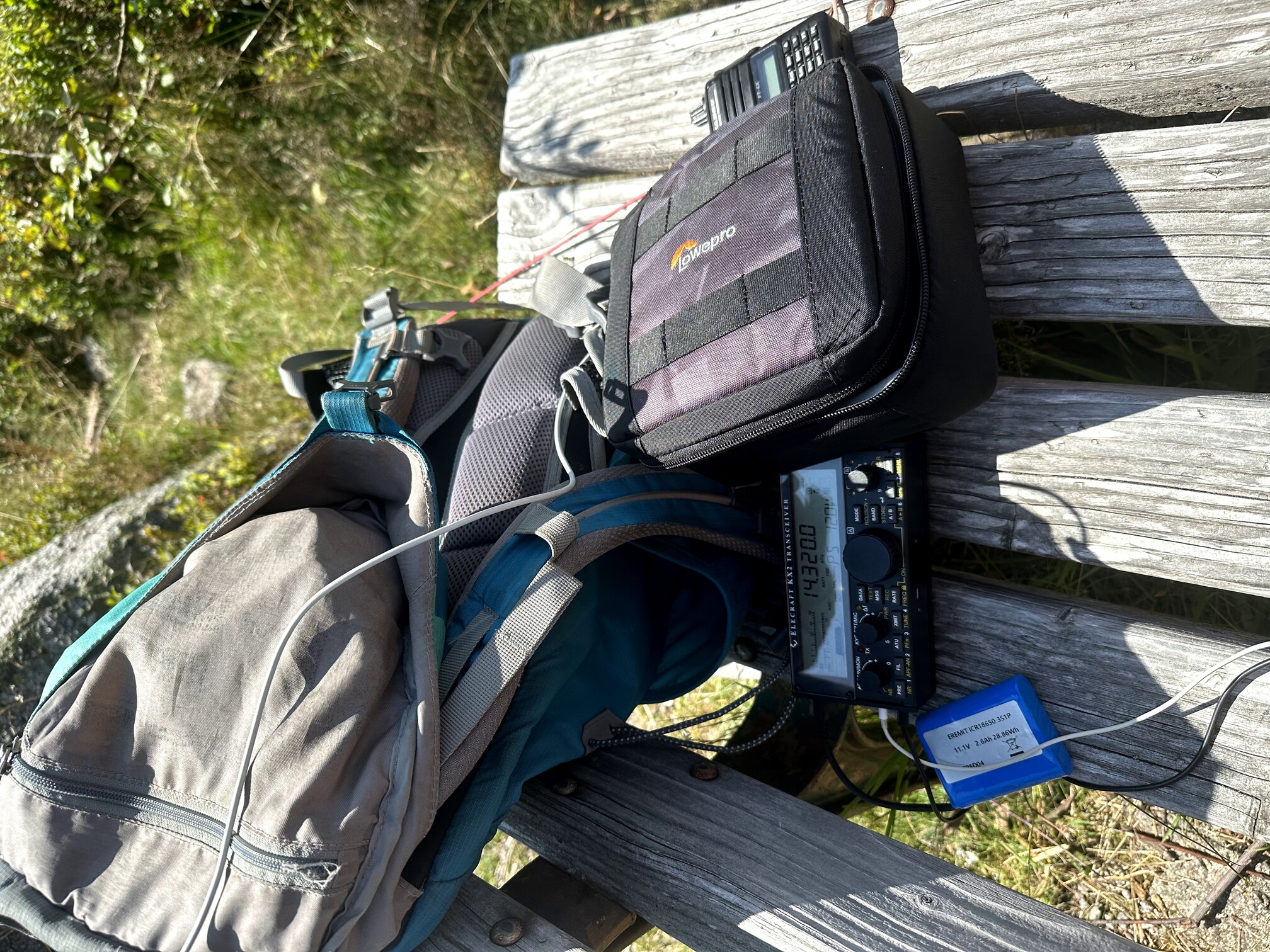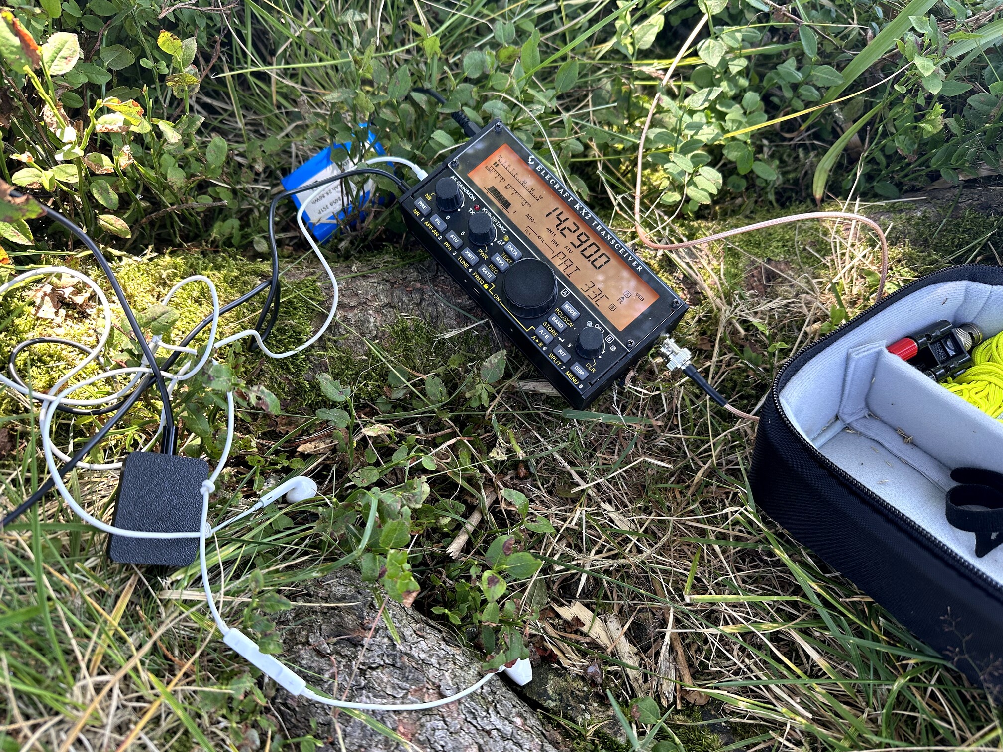 I suspended the feedpoint of my EFHW from a tree branch—less than ideal, as the wind moved the branch quite a bit, resulting in high SWR for much of the activation, especially on 40 m.