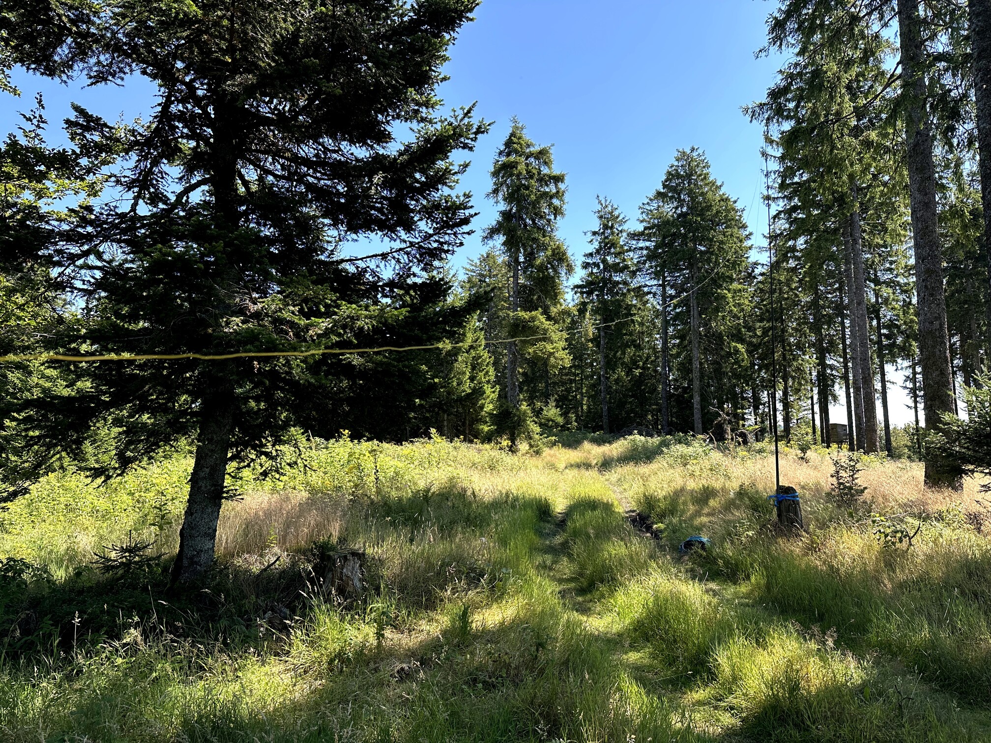 The initial segment was along a forest road, but I soon grew impatient and headed straight up. The summit isn’t an imposing Alpine peak, but rather a tranquil, flat clearing surrounded by forest—perfect for raising antennas.