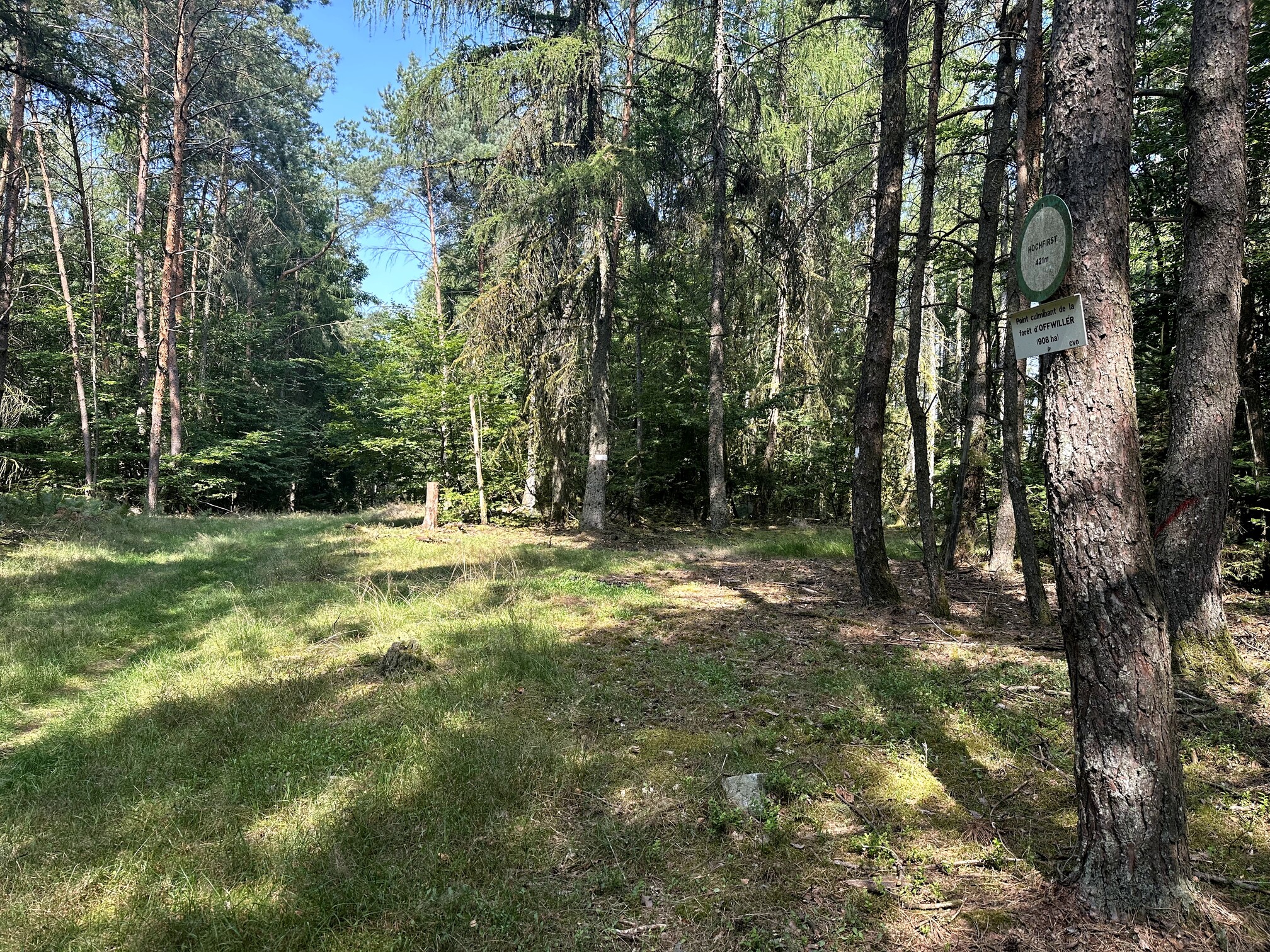In this case, Google Maps misleadingly struggled to suggest a workable route. Contrary to its directions, you can drive from Offwiller into the forest via Rue de la Chapelle, continuing about 2 km. Park at 48.91668, 7.53708.